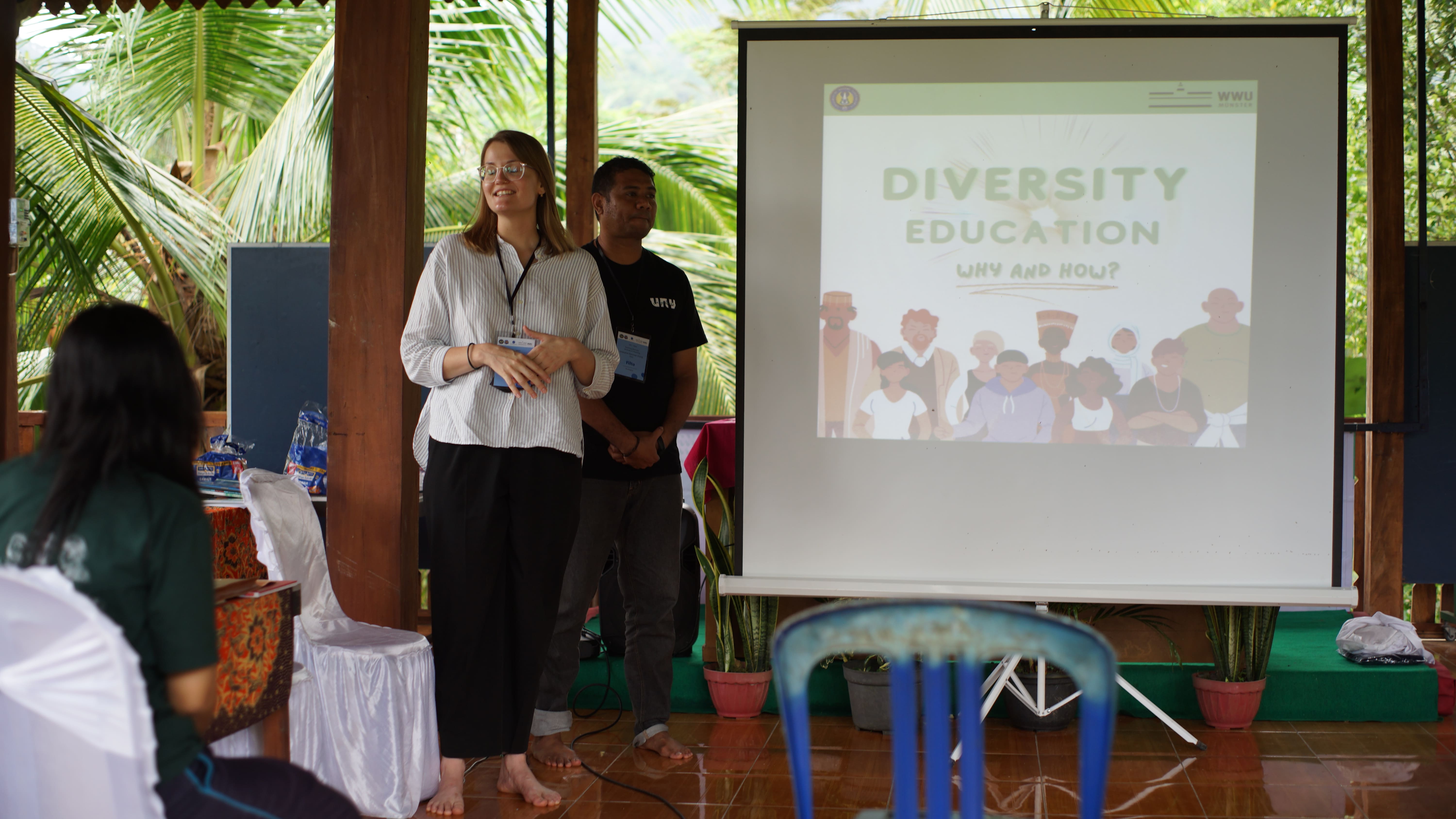 The State University of Yogyakarta, in collaboration with the University of Muenster from Germany, funded by the German Academic Exchange Services (DAAD), has the same vision and mission to introduce children's literature to all circles with the theme of "diversity." Thus, an ongoing program called "Teaching Diversity – Diversity in Teaching" was held. The summer camp aims to invite and campaign how important it is to embrace, teach, and understand diversity. That is why the summer camp theme is "Teaching Diversity – Diversity in Teaching." The summer camp also aims to form good teamwork between participants in innovating and conveying their thoughts in various discussion forms to achieve new thoughts and ideas. This program has two types of activities: intensive camps held in Segajih, Kulon Progo. This intensive camp activity requires participants to be involved in discussion and activities that are directly guided by lectures from the State University of Yogyakarta, namely Dr. Widyastuti Purbani, M.A. and Prof. Dr. Julie Stude and Kordula Schulze from the University of Muenster. This intensive camp is not only held to build helpful discussions about diversity but also a new experience to learn local wisdom and values in Indonesia. The camp not only focuses on character building and understanding the importance of diversity but also on developing and shaping the character of the participant's ability to spread awareness of the importance of diversity and participate in the global community.